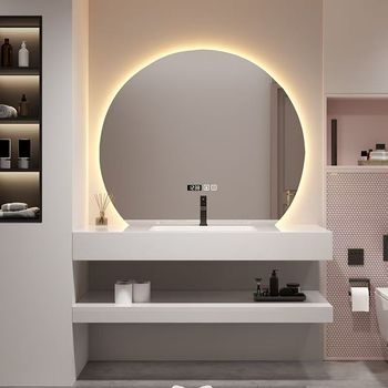 Premium MDF Eco-Friendly Resistente À Água Banheiro Armazenamento Vanity Cabinet LED Anti-Fog Espelho Pedra Bacia para Banheiros